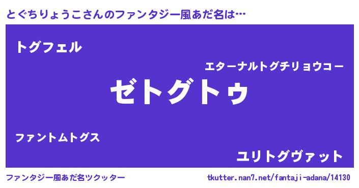 | 意味不明あだ名 | 『自称とぐちりょうこ』 |