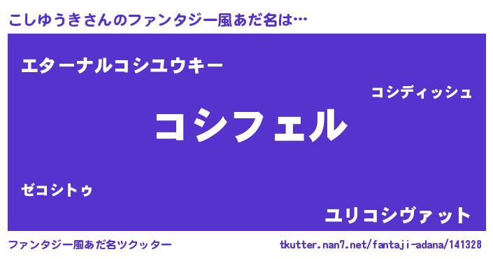 | 女子向けラノベタイトル風あだ名 | 『(仮)こしゆうきのやんごとなき事情』 |
