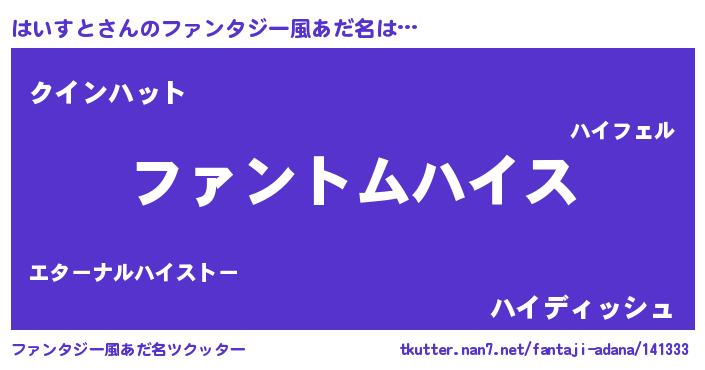 | ヒーロー風カッコイイあだ名 | 『炎刃騎士ハイ』『慈愛の使者はいすと』 |