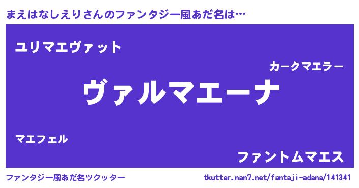 | 男性向けラノベタイトル風あだ名 | 『魔弾の王とまえはなしえり』 |