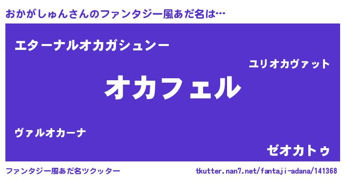 | 男性向けラノベタイトル風あだ名 | 『オカガシュンアートオンライン』 |