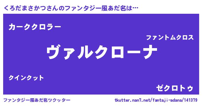 | 男性向けラノベタイトル風あだ名 | 『魔弾の王とくろだまさかつ』 |