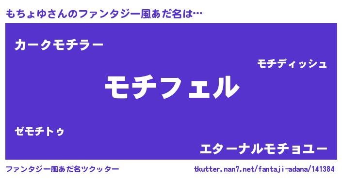 | 男性向けラノベタイトル風あだ名 | 『もちょゆの憂鬱』『緋弾のモチョユ』 |