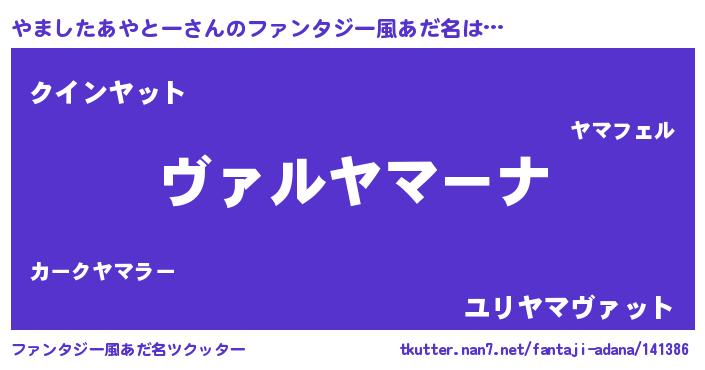 | 男性向けラノベタイトル風あだ名 | 『この素晴らしい世界にやましたあやとーを!』 |