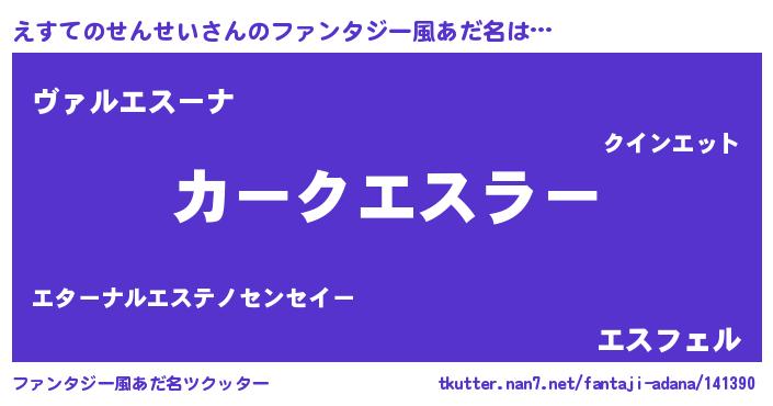 | 意味不明あだ名 | 『住所不定無職えすてのせんせい(11歳)』 |