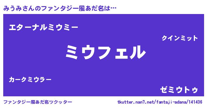 | ポケモン風あだ名 | 『ミウチュウ』『ミウミダネ』 |