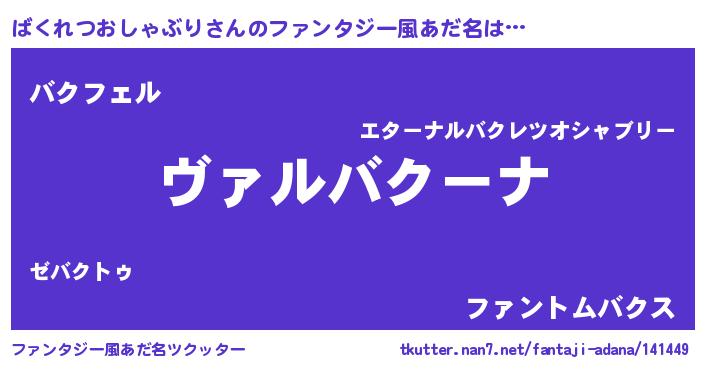 | 男性向けラノベタイトル風あだ名 | 『この素晴らしい世界にばくれつおしゃぶりを!』 |