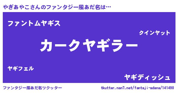 | ヒーロー風カッコイイあだ名 | 『幻影騎士ヤギ』『ネオヤギアヤコ』 |
