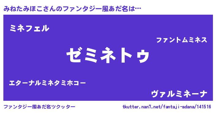 | 意味不明あだ名 | 『自称みねたみほこ』 |