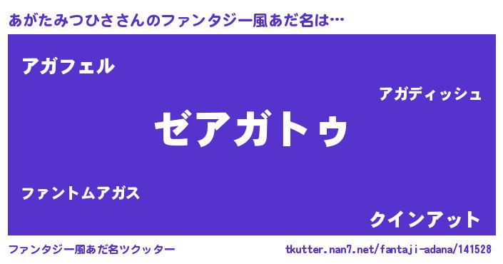 | 意味不明あだ名 | 『自称あがたみつひさ』 |