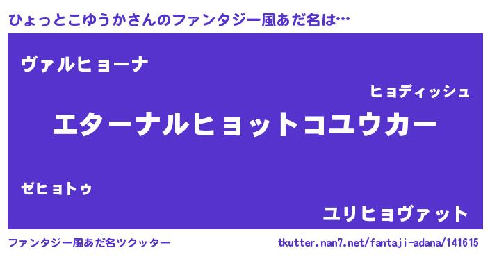 | 意味不明あだ名 | 『ひょっとこゆうかフォーエバー』 |