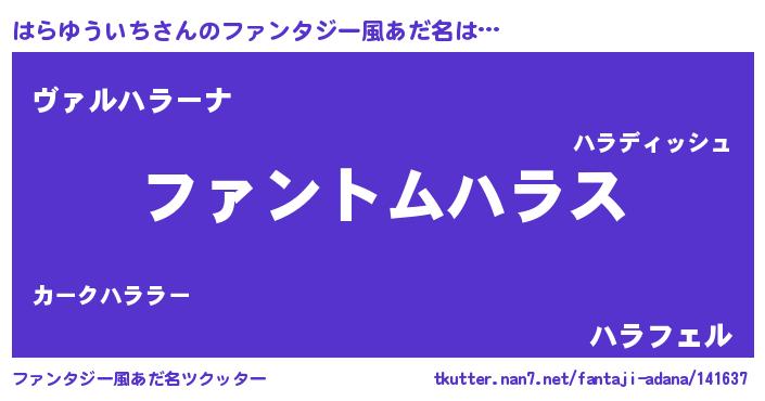 | 男性向けラノベタイトル風あだ名 | 『はらゆういちの嫁は女の子じゃないと思った?』 |