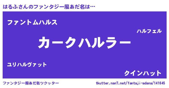 | 胡散臭い通販商品みたいなあだ名 | 『信頼と実績のネックレス…その名も「はるふ」』 |