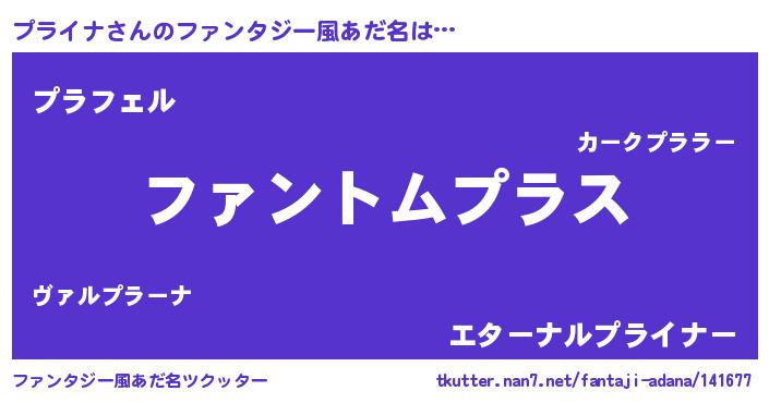 | 男性向けラノベタイトル風あだ名 | 『プライナの嫁は女の子じゃないと思った?』 |