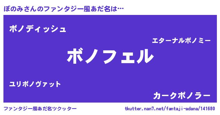 | 男性向けラノベタイトル風あだ名 | 『ボノミアートオンライン』 |