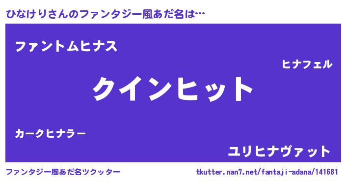 | 男性向けラノベタイトル風あだ名 | 『ノーゲーム・ノーヒナケリ』 |