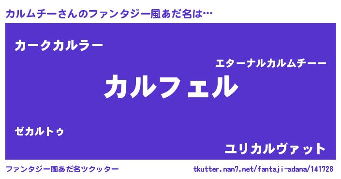 | 意味不明あだ名 | 『ペロリンカルムチー』『自称カルムチー』 |