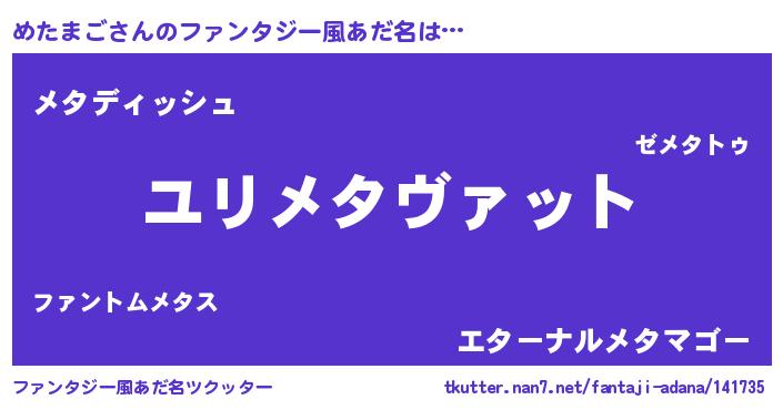 | ヒーロー風カッコイイあだ名 | 『ネオメタマゴ』『ウルトラめたまごマン』 |