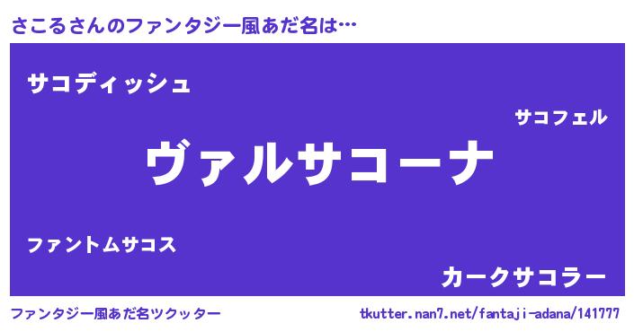 | ヘコむあだ名 | 『さこる(小並感)』『さこふぇ~』 |