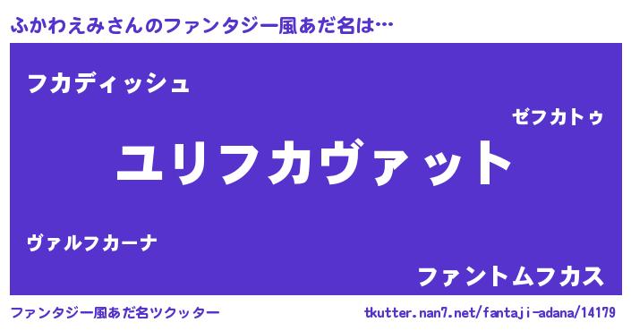 | ヘコむあだ名 | 『ふかわえみ(笑)』『ふか太郎』 |