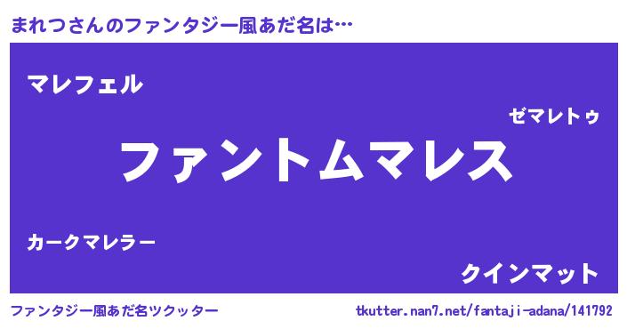 | 意味不明あだ名 | 『とにかく怪しいまれつ』『自称まれつ』 |
