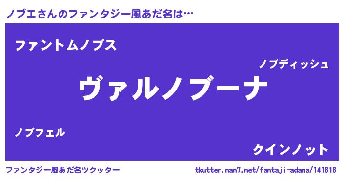 | ポケモン風あだ名 | 『ノーブイ』『ヒノブエ』『ゼニノブ』 |
