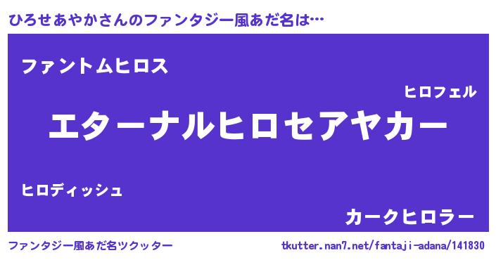 | ポケモン風あだ名 | 『ヒロセダネ』『ヒヒロセアヤカ』 |