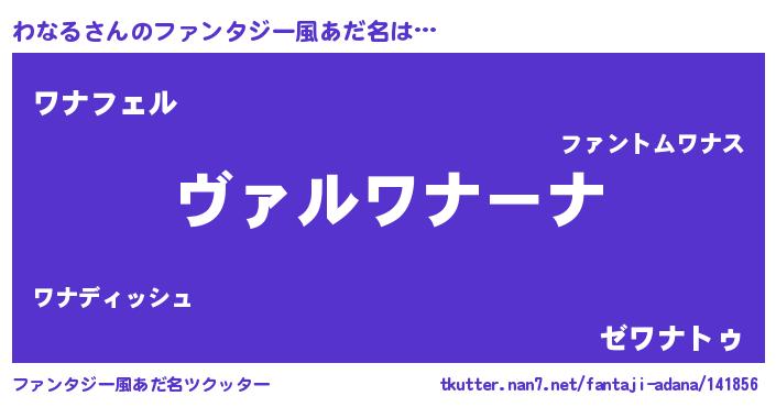 | 男性向けラノベタイトル風あだ名 | 『魔弾の王とわなる』『わなるの憂鬱』 |