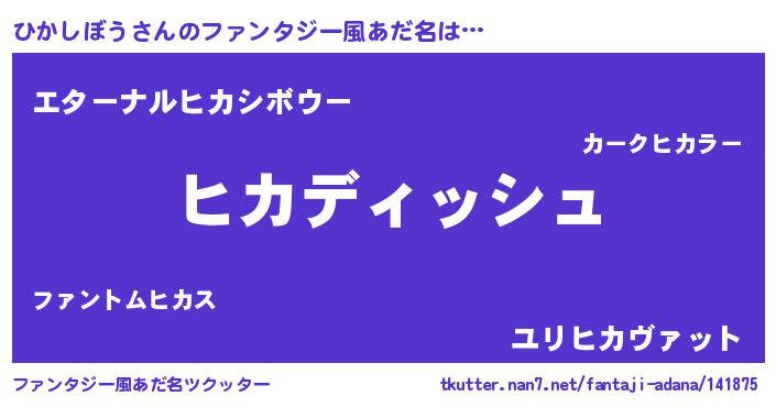 | ヒーロー風カッコイイあだ名 | 『ネオヒカシボウ』『暗黒騎士ヒカ』 |