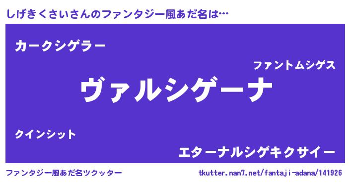 | 意味不明あだ名 | 『住所不定無職しげきくさい(68歳)』 |