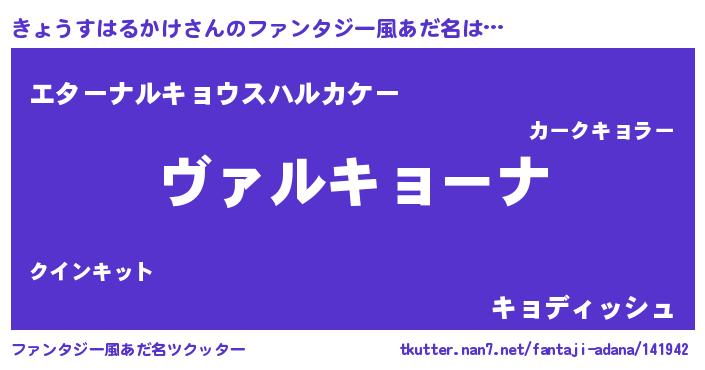 | 男性向けラノベタイトル風あだ名 | 『きょうすはるかけに滅ぼされるだけの簡単なお仕事です』 |