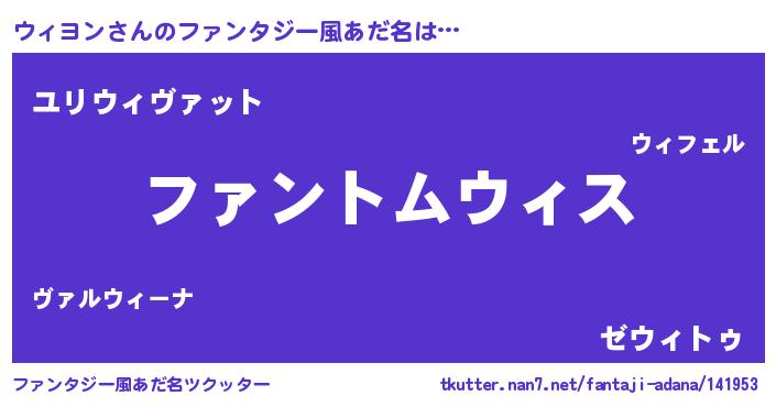 | 男性向けラノベタイトル風あだ名 | 『はたらくウィヨンさま!』 |
