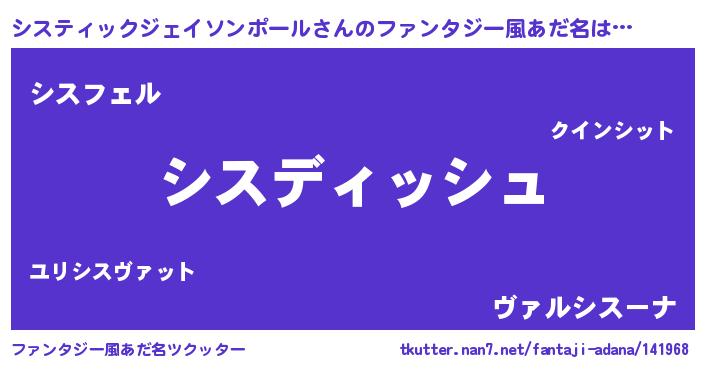 | 伝説のあだ名 | 『古文書に記された吟遊詩人システィックジェイソンポール』 |