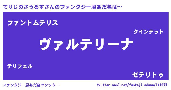 | 意味不明あだ名 | 『住所不定無職てりじのさうるす(10歳)』 |