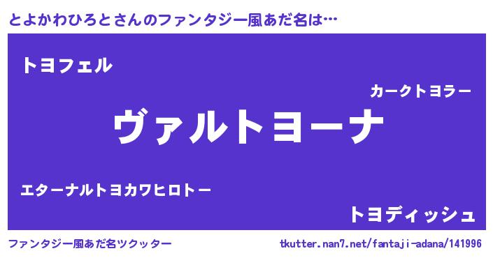 | 男性向けラノベタイトル風あだ名 | 『この素晴らしい世界にとよかわひろとを!』 |