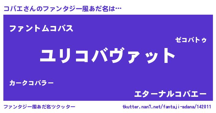 | ヒーロー風カッコイイあだ名 | 『魔戒騎士コバ』『ウルトラコバエマン』 |