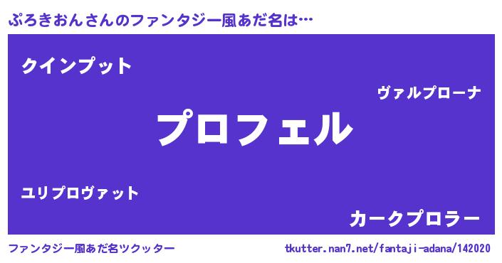 | 男性向けラノベタイトル風あだ名 | 『ぷろきおんの憂鬱』 |