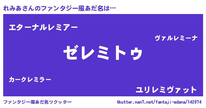 | 男性向けラノベタイトル風あだ名 | 『Re:れみあから始める異世界生活』 |