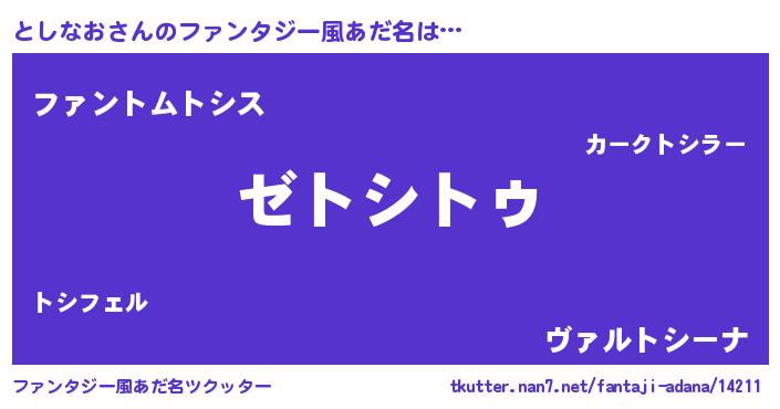 | 男性向けラノベタイトル風あだ名 | 『Re:としなおから始める異世界生活』 |