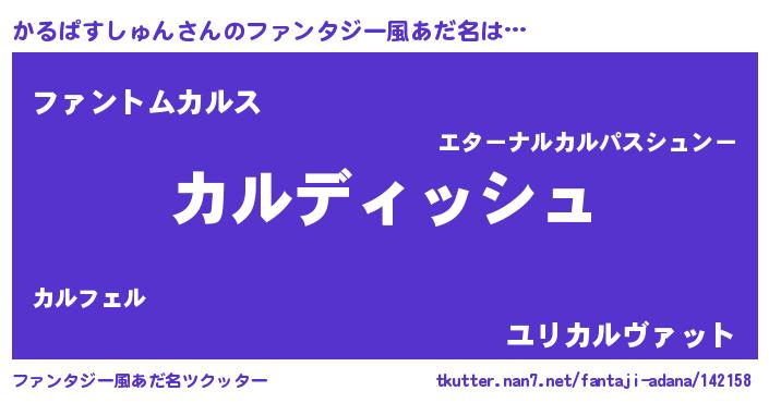 | 男性向けラノベタイトル風あだ名 | 『かるぱすしゅんという概念が存在しない退屈な世界 』 |