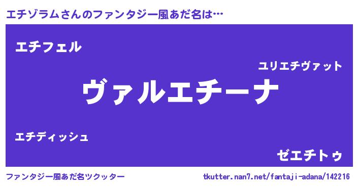 | 自動車の名前っぽいあだ名 | 『エウディ』『エチティマ』 |