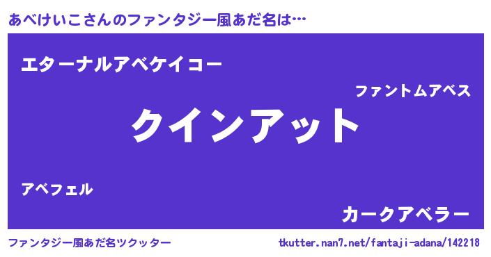 | ヒーロー風カッコイイあだ名 | 『正義の使者あべけいこ』『暗黒騎士アベ』 |