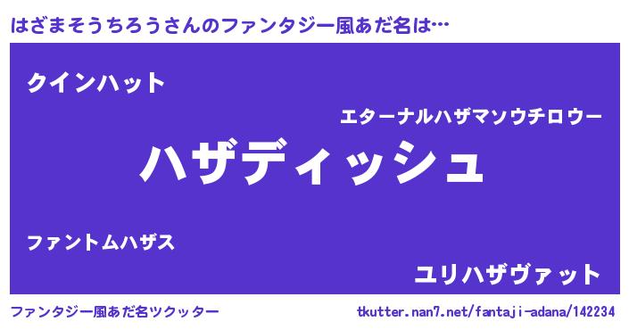 | ヘコむあだ名 | 『はざまそうちろう(遠い目)』『豆乳』 |