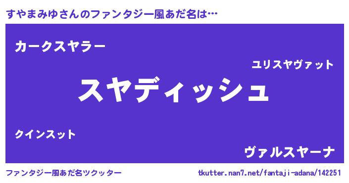 | ヒーロー風カッコイイあだ名 | 『ネオスヤマミユ』『仮面スヤダー』 |