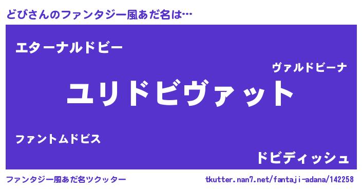 | 男性向けラノベタイトル風あだ名 | 『どび~年齢イコール彼女いない歴の魔法使い~』 |