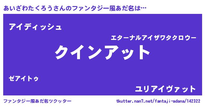 | ヘコむあだ名 | 『あいざわたくろう(苦笑)』『酢こんぶ』 |