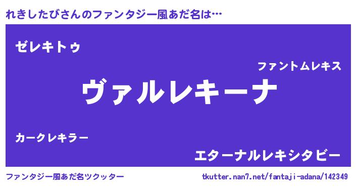 | 男性向けラノベタイトル風あだ名 | 『この素晴らしい世界にれきしたびを!』 |