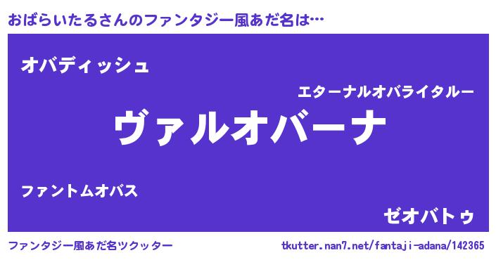 | 男性向けラノベタイトル風あだ名 | 『この素晴らしい世界におばらいたるを!』 |
