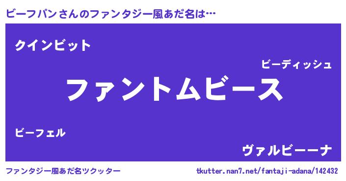 | ヒーロー風カッコイイあだ名 | 『炎刃騎士ビー』『愛の使者ビーフパン』 |
