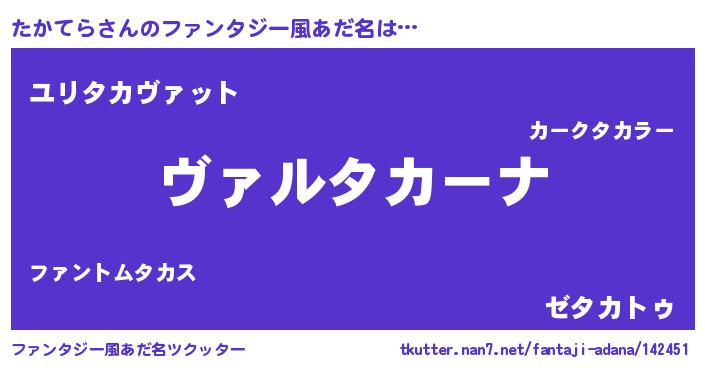 | ヒーロー風カッコイイあだ名 | 『仮面タカダー』『サイバー戦士タカテラ』 |
